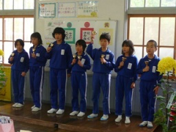 感謝の気持ちをこめて作ったプレゼントを渡したり, ハンドベルの演奏を聴いていただいたりしました。 今年もたくさんの芋を収穫し,きれいな菊を咲かせることが できました。講師の皆さん,おりがとうございました。 来年もまた,よろしくお願いします。 |