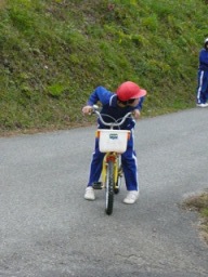 次は,学校の下の道路で実践練習です。簡単だと思っていましたが, 止まる場所を間違えたり,ふらふらしてしまったりと,意外と難しいもの だなぁと感じました。でも,優しく教えてくださったので,みんな上手に 乗れるようになりました。 |