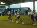 1回戦目は,7人が二組に分かれて綱引きです。 「えっ!!7人」なんて思わないでください。みんな真剣です。精一杯のようすに応援する方も力が入りました。 その後は,応援席に力自慢を探しに行き,地域の方と一緒に綱引きをしました。 |